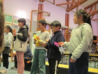 投稿日: 2025年10月24日2025年10月24日 投稿者: adminへき地教育実習生離任式 本日4回目(最終)の更新です。2週間のへき地教育実習も今日で最終日を迎えました。実習生の先生方の離任式を駅舎・地域清掃の後に行いました。先生たちから一人一人にプレゼントが手渡され、子どもたちみんな大喜びでした(*^_^*)