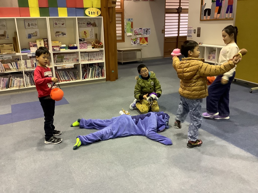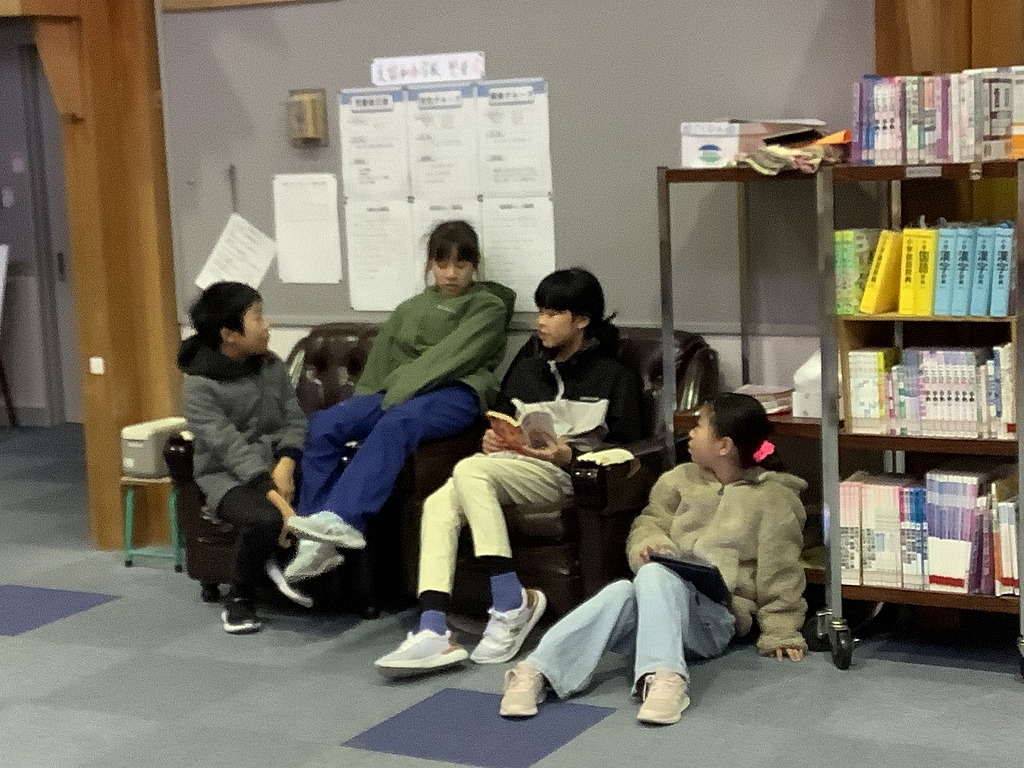 美小HPへようこそ。今日は一段℃冷えます。最低気温は-1℃、最高気温は8℃の予報です。朝読書の時間の前、早く登校した子どもたちはホールでそれぞれ好きな遊びをしています。今日はハロウィン仮装チームの横で6年生たちが本を読みながらときどきおしゃべりしていました。