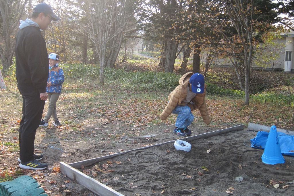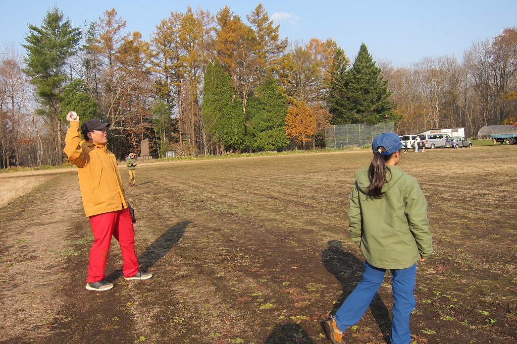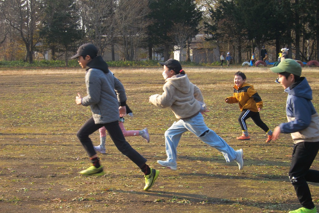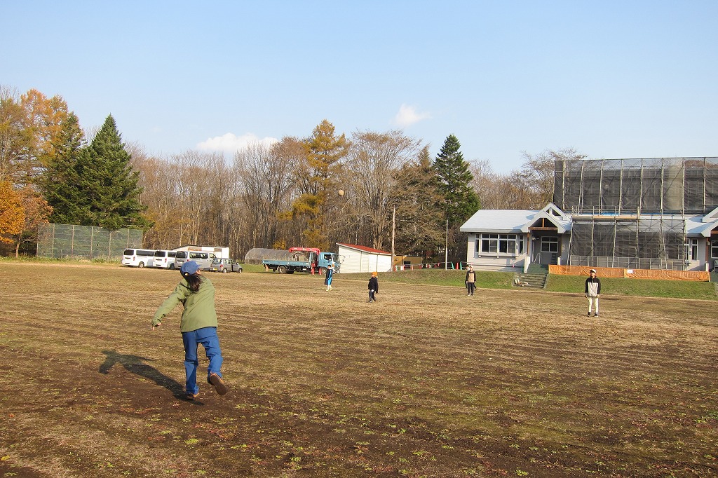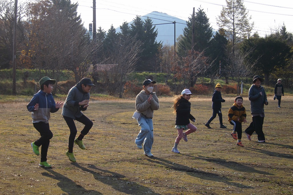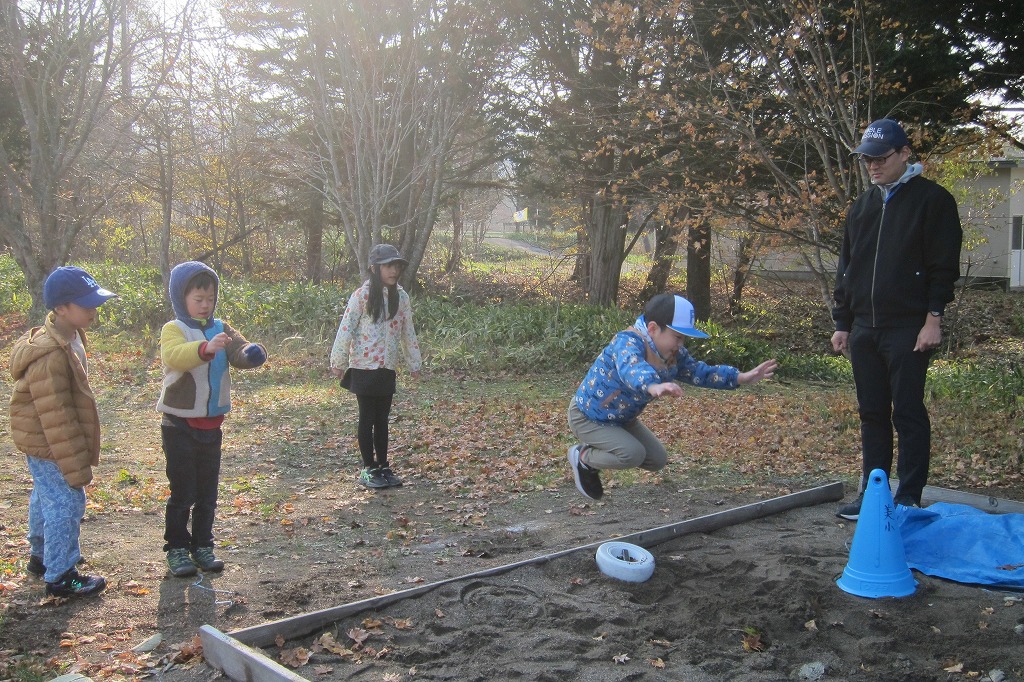 朝の会の後、火曜日の摩周タイムは体力づくり。新体力テストの項目にある50M走、立ち幅跳び、ソフトボール投げについて3つのグループに分かれてコツを教わりながら練習しました。
