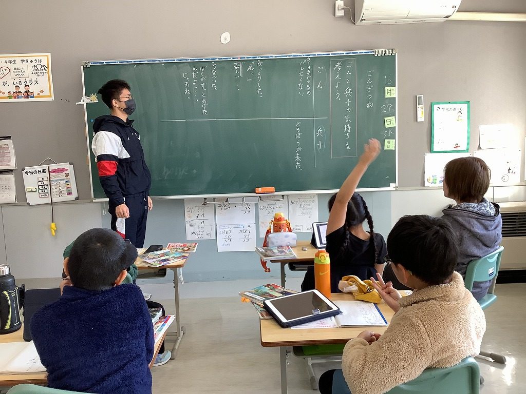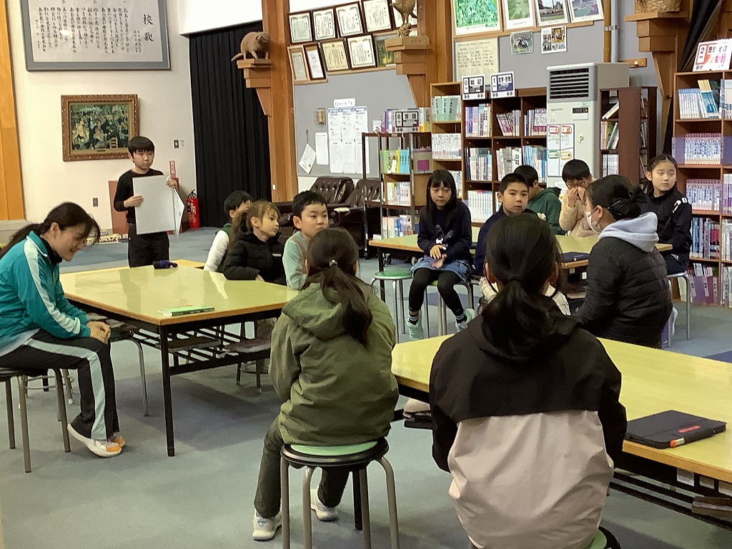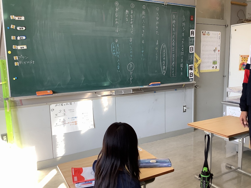 美小HPへようこそ。今朝はグラウンド一面が霜で真っ白になるほどでした。いつもどおりホールで朝の会。Rさんは今日初めての司会でしたが、とても上手にできました。