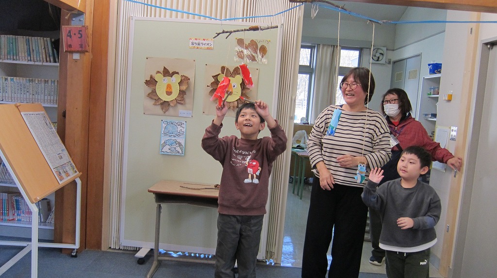 『まえ、学童さん9人だったか13人だったか。ゆうびん局のおじさんからききました。今何人かな……。これからさむくなるけど、ニャンバッテくださいネ』