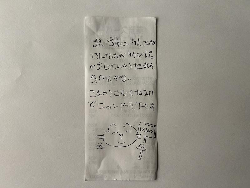 毎月、学校便りを「美留和駅」に掲示しています。今日も新しい学校便りを掲示しに行ったところ、なにか挟まっている……。よく見ると、レシートの裏に書かれた「おてがみ」でした。
