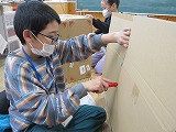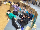 中学年は、図工を2時間頑張りました。段ボールや画用紙などを使って、協力しながら楽しいまち作りをしました。