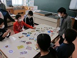3グループにわかれて、アートカードを使ってカルタをしたり、しりとりをしたりしました。アートカードは、ゴッホのひまわりやモナ・リザの絵など様々な種類があり、人それぞれの感じ方や見方があることも楽しく学びました。