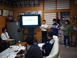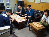 校長室で児童会三役が活動を説明。質疑応答にも堂々と答えていました。