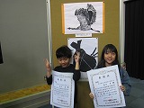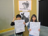 朝から嬉しいニュース。図工で制作した版画を出品した結果が今日届きました。応募校数465校、作品数29,332点の中から、1年生Sさんの「だいすきカブトムシ」が金賞、3年生Sさんの「とび立ったツル」が銀賞を受賞しました。朝会で表彰式を行い、みんなで大きな拍手を贈りました。姉弟で記念写真撮影。にこにこの笑顔がステキでした!