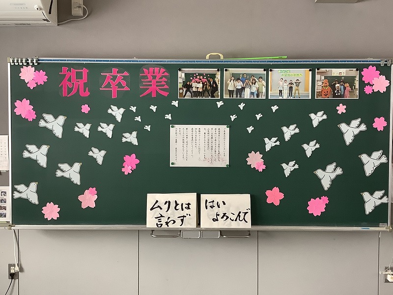 卒業生と在校生の保護者、家族も来て下さって、盛大に修了証書・卒業証書授与式を終えることができました。