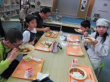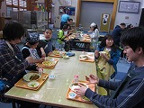 今年度は低学年が増えたため、学級ごとに給食を食べていました。年度途中から子どもたちからの声で毎週金曜日、3年生以上の児童がホールで給食を食べることになりました。そして、3月23日、今年度最後の給食。子どもたちからの発案で、全校児童みんな一緒にホールで給食を食べました。先生たちもみんな一緒、笑顔いっぱいの楽しいランチタイムを過ごしました。