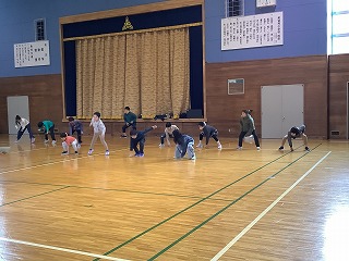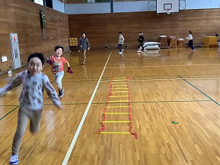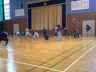 火曜日は「体力づくり」2分間走の後、いろいろな種類のジャンプに20秒ずつ挑戦しました。