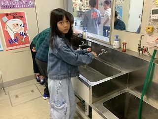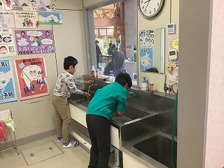 教室の戻る前には必ず「手洗い」インフルエンザ予防もバッチリです。